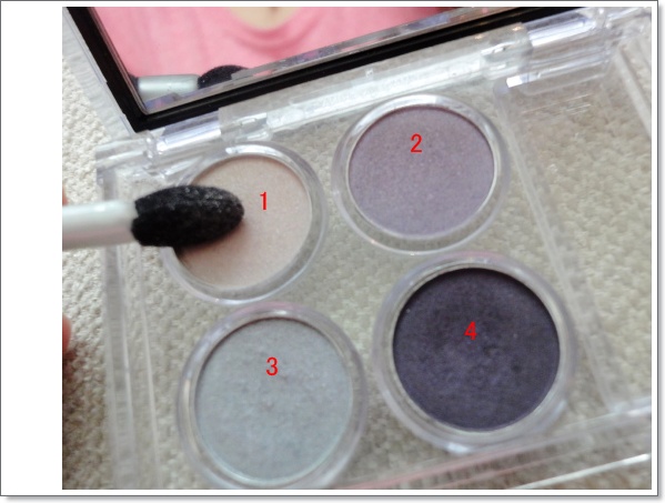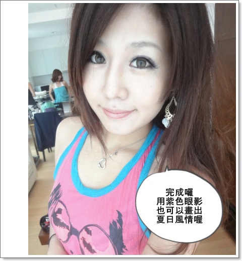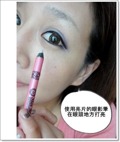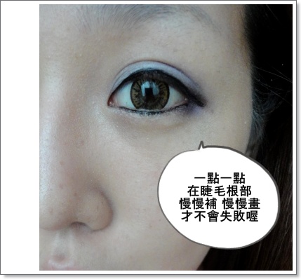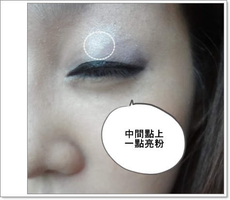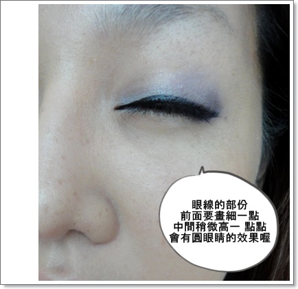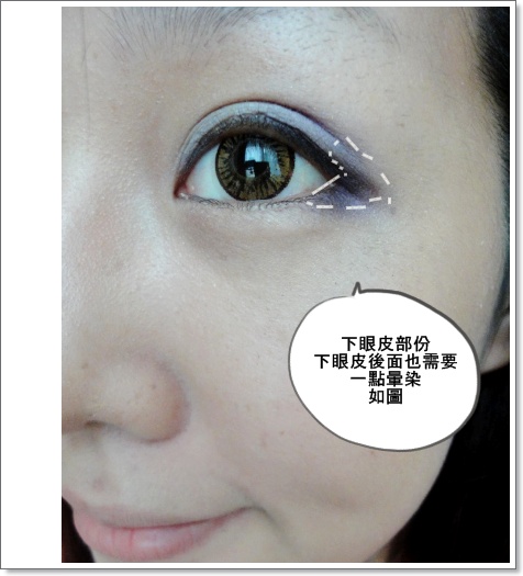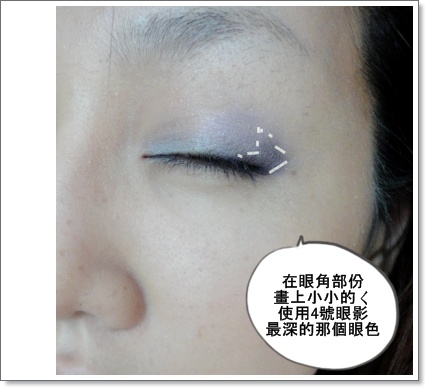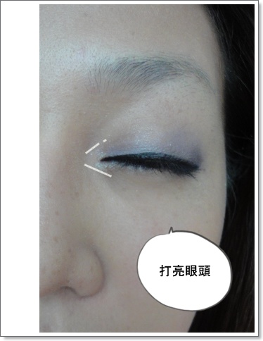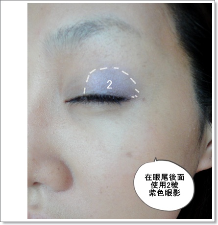 從眼中到眼尾的部分,畫上淺淺的淡紫色