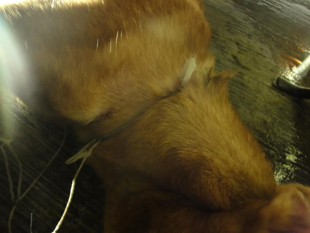 小黃脖子被鐵絲拉了一圈都潰爛了