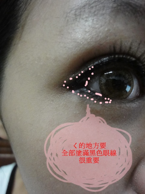 步驟9大眼娃娃妝最重要的 還有下眼線
