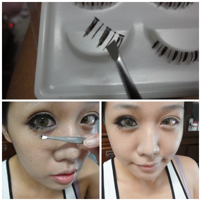 在貼假睫毛之前 記的先用睫毛夾 夾起來並刷上睫毛膏 |