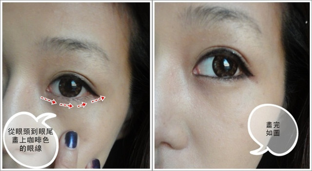 從眼頭開始畫到眼尾