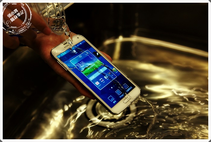 | 來複習一下GALAXY S5擁有的防水功能,這對我們這類行喜歡四處旅遊的人非常的重要,因為大部分長時間旅遊的人都會遇上很多水上活動與突然暴雨,舉例每次去泰國拍潑水節的時候,小寶就會非常的頭疼,總不可能帶著5D2單眼相機在街頭奮戰吧,一整天玩下來幾乎是鐵定掛了,但是又不可能特地為了某些玩水時刻又買了防水相機,最好的方式就是擁有一台GALAXY S5,除了有強大的攝相功能以外,防水設備也是一流的,在水裡打開照相機依然清晰可看,GALAXY S5這次使用的是生活防水防塵IP67,這個英文數字代表著防塵係數可以達到等級6,可以深入一公尺的水裡依然無礙,完全不用另外準備相機。 |