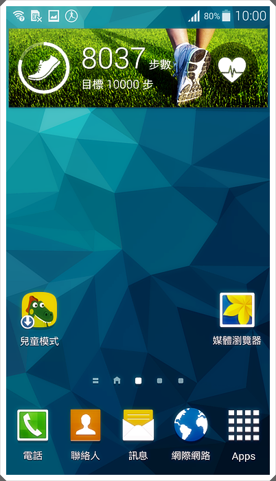 | 在上次的體驗會中,小寶有詳細的跟大家分享過心跳偵測功能,其實在手機頁面上可以直接觀看的步數功能更加讓我喜歡,每天一萬步健康有保固,對於前陣子住院的我來說,醫生給我的建議就是美天最好固定時間去步行運動一下,因為小寶是心肌哽塞的原因,所以也不能作太過於激烈的運動,步行對我來說就非常非常的重要,如何知道每天大概的運動量,GALAXY S5給了我非常清楚的目標,隨時打開手機衣看就可以看到今天就否達到目標,每天半夜12點就會自動歸零,非常實用。 |