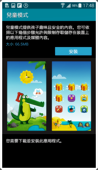 雖然小寶還沒有小孩子,但是家族裡面的小朋友卻也不少,尤其現在的小孩子都非常的依賴手機遊戲,很多家長也常因為這個問題頭痛不已,有時後把手機給小孩子也很不放心,因為畢竟小朋友也不是很懂,都會隨便亂按亂點,我們家的小姪子們也常拿我的手機玩,每次玩一趟回來不是電話簿少了幾個朋友的電話,就是APP程式少了幾個會是新增了幾個,讓我也相當的困擾,有一次還搞到手機上鎖,簡直快瘋了,但是GALAXY S5的兒童模式一次就可以把這些問題通通解決掉。 |