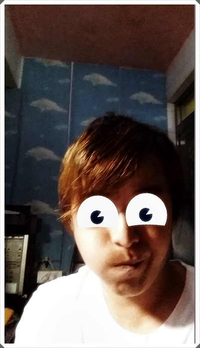 | 拍照模式理面有很多可愛的選項可以供小朋友發揮創意及想像力,也有很多圖案跟可愛表情也可以直接套入照片中。 |