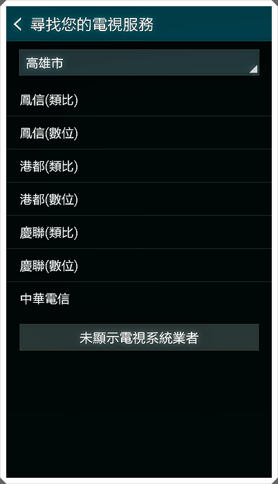 | 選完區域後就會顯示出當地的系統台業者,在將家裡面裝設的系統台業者名稱輸入。 |