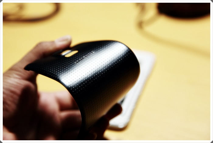 看起來不堪一折的背蓋在體驗會的時候就體驗過了,但是每次跟朋友見面的時候,總喜歡讓她們親眼看到這GALAXY S5神奇的彎曲技巧。