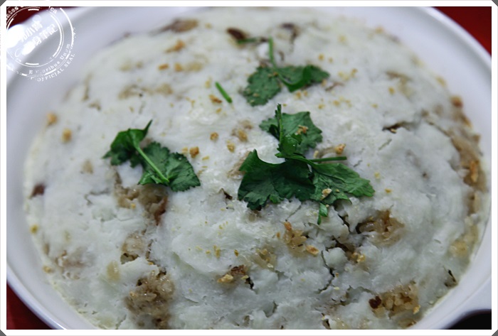 | 我個人相當喜歡這一道山藥米糕,熱騰騰香噴噴的米糕上面蓋滿了山藥泥,綿密口感一口吃下其實會誤會是芋泥,但是綿密口感中透著一點清甜,令人忍不住愛上這道菜。 |