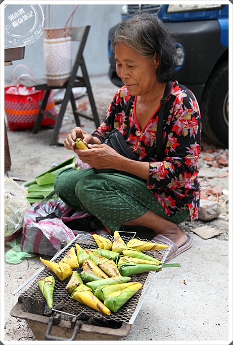 | 路邊阿嬤烤著糯米巴巴,外面用芭蕉葉包著,熱熱的吃實在過癮,彷彿間回到了泰國風情的回憶。 |