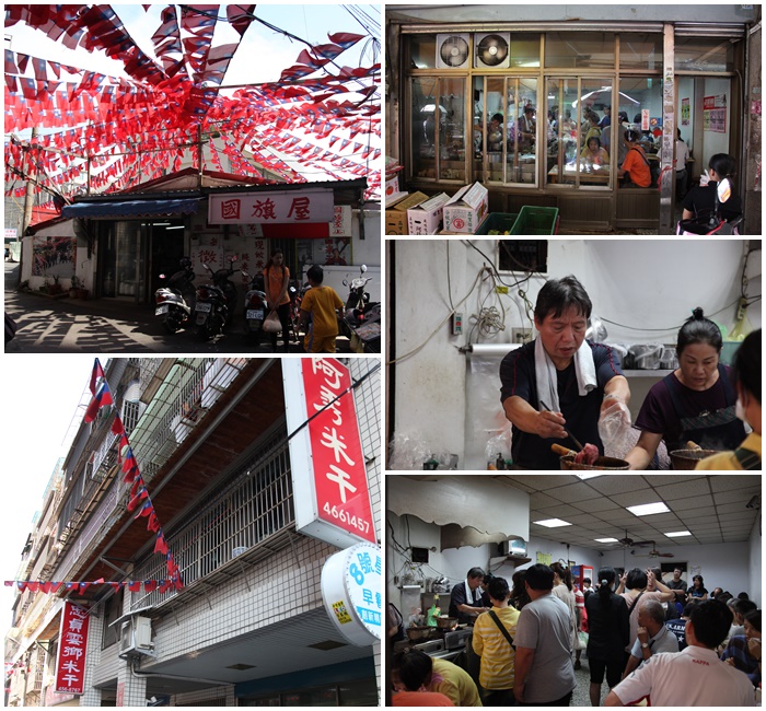 | 說到米干不得不跟大家分享一下,其實龍岡忠貞市場這附近的米干名店真的很多,最出名的莫過於市場內的無名米干,照片右邊的三張照片就是沒有招牌的無名米干,人潮幾乎滿到店外還在排隊,且一半幾乎都是當地人,這幾家吃起來我覺得無名米干的味道最濃郁,口味也較重,阿秀米干我個人比較喜歡,味道比較清爽,雲鄉米干人潮明顯沒有其他兩家的多,國旗屋是很多人來這邊打卡的熱門景點,當天看起來用餐的人潮並不多,最多的還是無名米干跟阿秀米干,可以依照自己的口味來選擇。 |