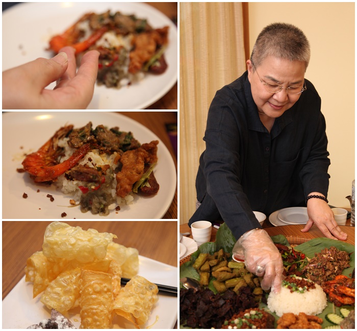 | 被美食家胡天蘭一直推薦的就是這手扒飯,體驗真正當地人的用餐方式,每個人戴上塑膠手套,直接抓白飯抓配菜,放在盤子上霍一霍直接送入口,因為辛香料比較多,還帶點辣,很多人都說這樣其實就是已經半消毒過了,我必須說這一大盤很推薦來試試看,別看她旁邊8樣小菜,每一種都相當的可口美味,我喜歡它們的茄子泥根牛肉乾巴還有炸魚,攪在一起吃真的很美味。 |