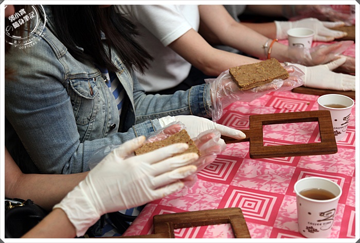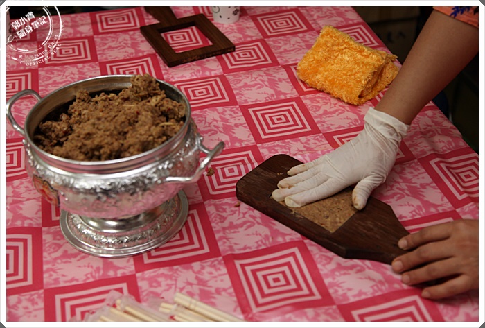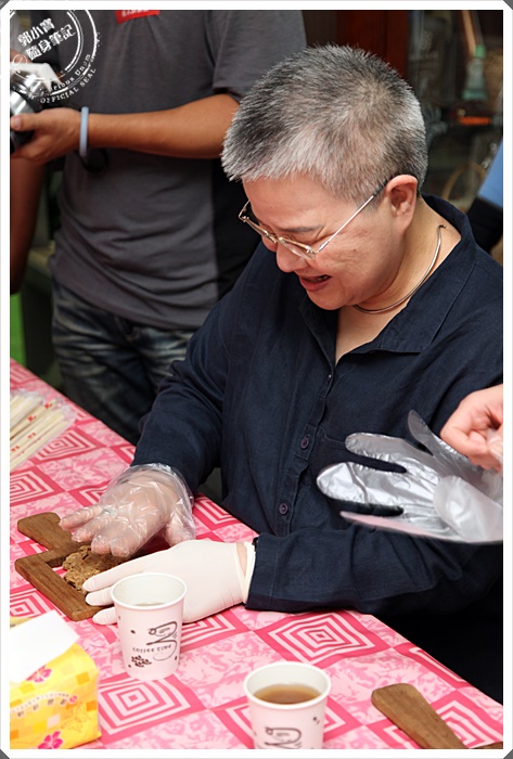 | 老闆娘親自示範一下如何製作豆鼓餅給我們看,其實很簡單的就將醬菜壓在模具裡面,然後在倒出來就好了。 |