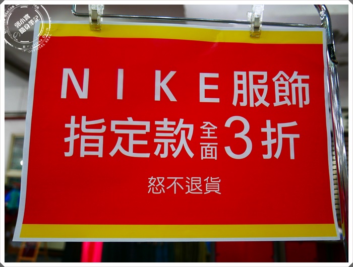 還有服飾也超級優惠的,一整區的3折服飾。最高五折,四折服飾專區超大的,慢跑家族最愛的機能衣跟彈力褲、慢跑運動外套通通4折超好買,年度耐吉NIKE台中場短短的15天快閃特賣,錯過保證你會後悔莫及!!