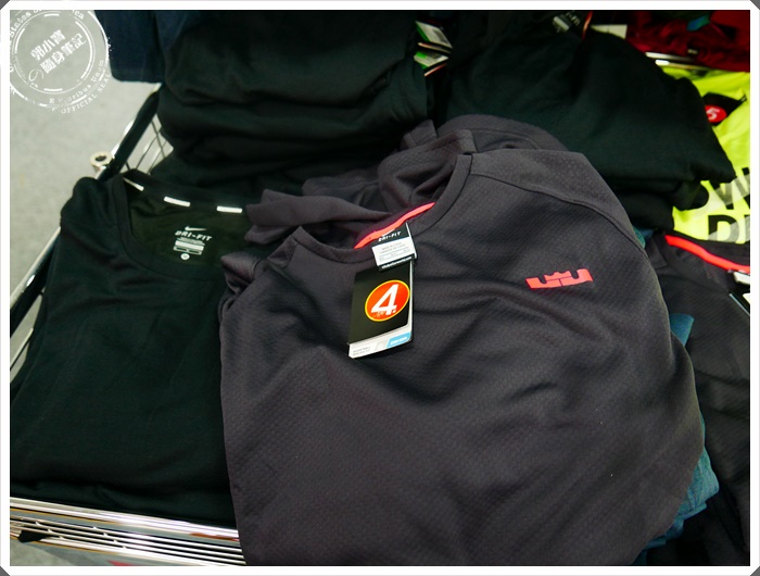 | 男生的四折區域裏面有很多詹姆士跟科比的商品,這些平常在門市連9折都很難看到的商品,這次台中全面四折了,運動長衣跟緊身衣通通都有,買到當然就是賺到。 |