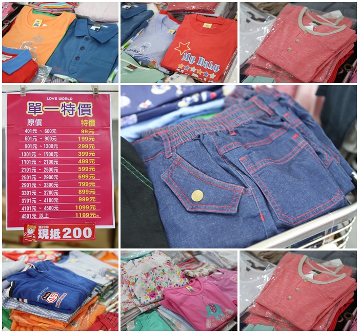 單一特價的部分最低也是殺到了99元,同樣也有滿2000現折200的活動,各式各樣的服飾褲子通通都有,我個人相當推薦這次愛的世界童裝特賣會,真的可以讓媽媽們買個過癮,小朋友的新年新衣就在這邊挑選了。 |