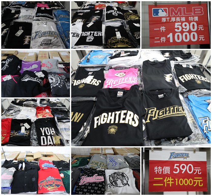 這次創信也準備了秋冬的服飾,這價位同樣也是很便宜,通常它們家的秋冬服飾價錢會在翻個兩倍,但是在萬國特賣這邊一樣下殺到底,非常非常的划算,這一區除了長T以外還有運動長褲,長褲的部分通常比較少特賣,所以千萬別錯過長褲的部分,其中還有北海道火腿的隊T,我個人因為陽岱鋼的關係,也買了超多北海道火腿隊的衣服XD (可惜陽桑離開北海道惹)