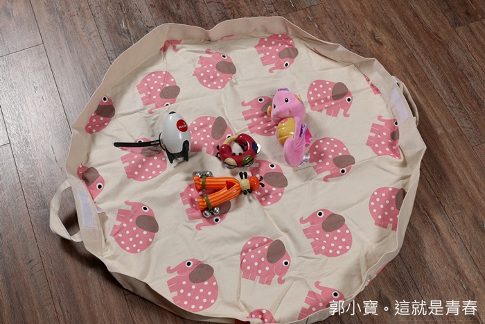 | 外出旅遊野餐就一定要入手這個玩具收納帶,真的是玩具秒收神器,玩具收納帶有很多款顏色跟圖樣,有興趣的可以上親子良品的網站挑選,我們挑選的式粉紅大象,非常可愛。 |