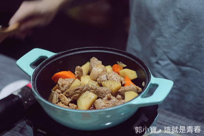 摩堤智慧家電搭配它們設計的鑄鐵鍋,真的快速又方便可以把馬鈴薯燉肉處理到很完美,一點都不會耗費太久的時間,豬肉跟馬鈴薯都燉的很軟爛,光是處理燉肉這一道菜就讓我覺得摩堤的團購一定要買了!