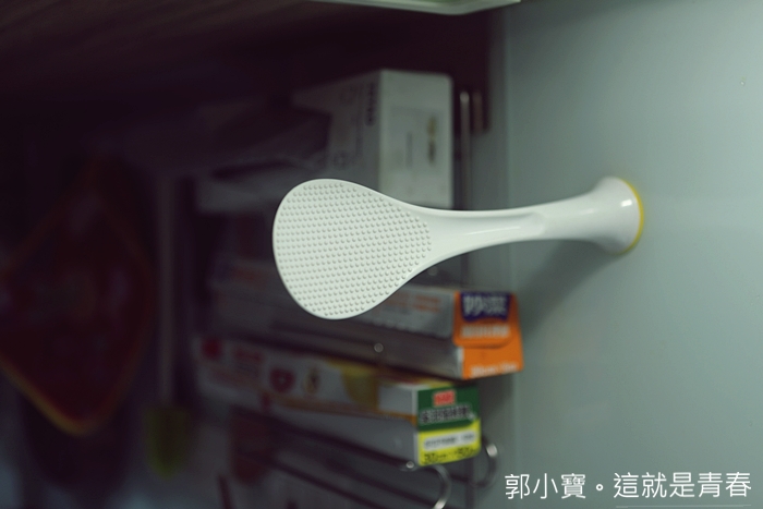 | 附贈的飯勺也很有創意,可以黏貼在很多地方,可愛又有趣。 |