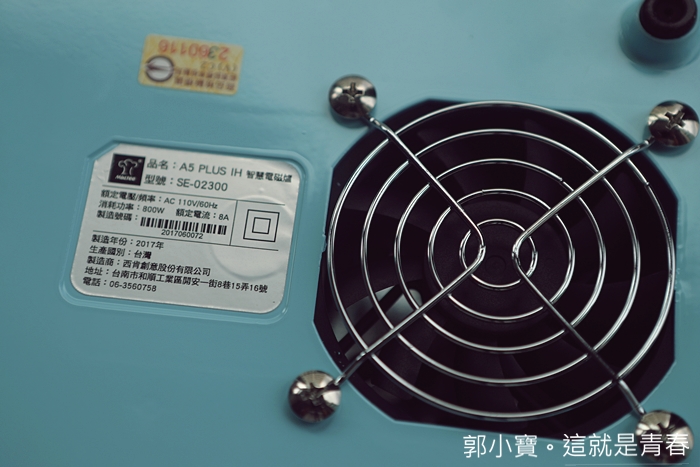 | 散熱風扇安裝在A5 PLUS IH爐的下方,關閉電源後它後自動散熱到一定的程度後會自動關閉,再來就是A5 PLUS IH爐面板真的比較安全,一般的電磁爐可能在高溫的情況下不小心碰到面板即使迅速抽手也逃離不了起水泡的慘狀,但是摩堤的IH即使在高溫的情況下,人體的接觸溫度沒有像一般的電磁爐那麼高。 |