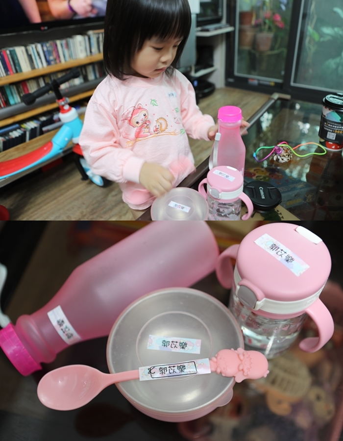 | Cola也是一個很會宣示主權的小屁孩,她的東西都不讓人碰,貼上姓名貼後即使以後去上學也不怕被誤用,加上EPSON的標籤帶貼紙撕下來也不會有殘膠,非常好用! |