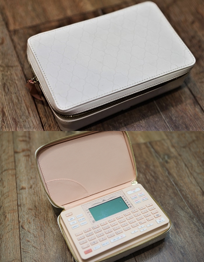 | 美妝標籤機其中一個熱銷的主因就是EPSON-LW-K420 美妝標籤機的防塵皮質蓋超美,彷彿精品化妝包的珍珠白格陵紋搭配馬卡龍橘粉的內裝一整個夢幻到爆,放在家裡面根本就是本身就是一台裝飾物阿XD |