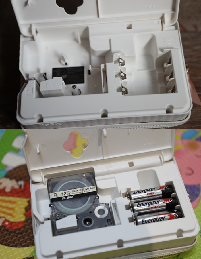 安裝十分常簡單容易上手,六顆三號電池一放上去,再放入妳的標籤紙就可以瘋狂的開始妳的收納列印之旅,小朋友也可以瘋狂的製作宣示主權的姓名貼紙。