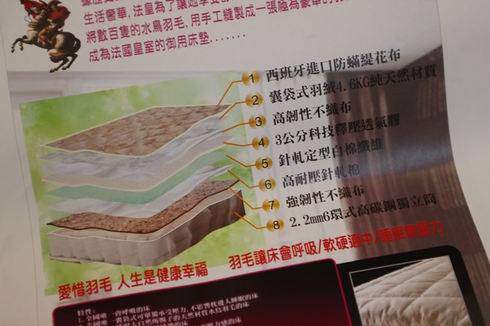 | 接著負責品牌的妹妹就趕緊跟我介紹它們家的獨家商品,法國皇家約瑟芬羽絨床。 |