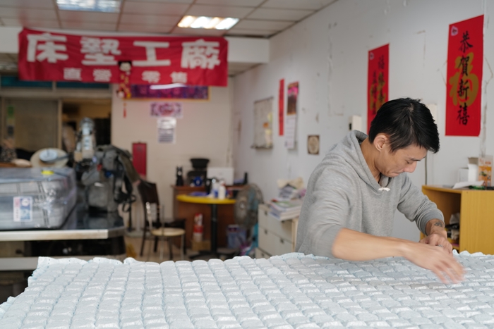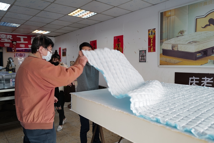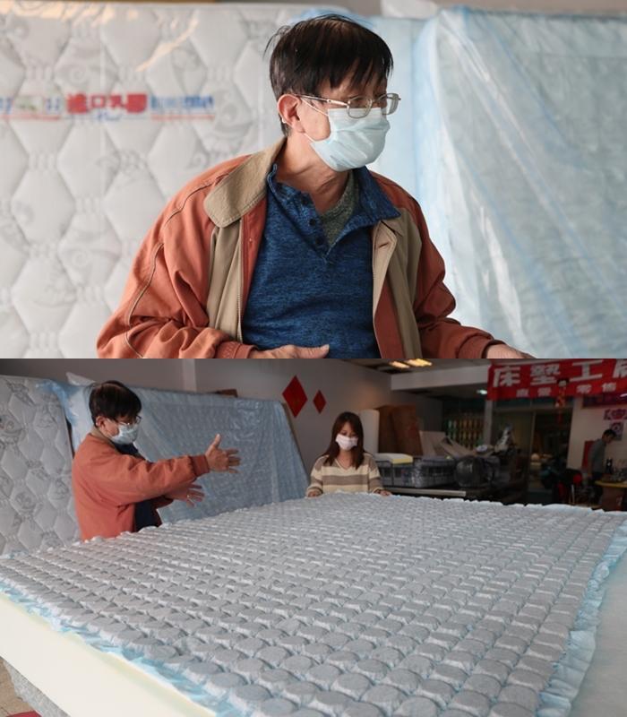 | 第一代的老老闆還會出來跟二代溝通怎麼增加客人的舒適度,老老闆從年輕就當學徒,這輩子幾乎都在幫客人製作各種床墊,也見證了南昌街的興衰,即使到現在依然有很多老客人只相信這樣的職人精神,持續回到床老闆床墊工廠這邊購買床墊。 |
