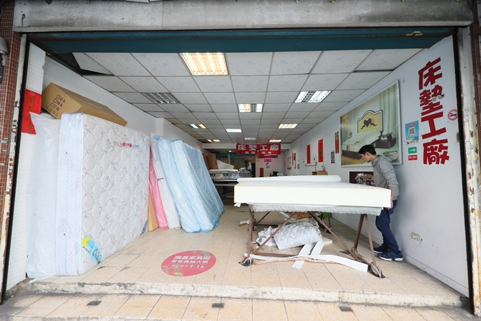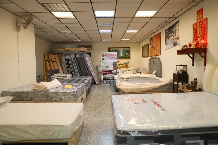 | 床老闆門口都是一張張客人訂好的客製床墊,每一張床墊從表布到內層到彈簧全部都是依照客人的需求,住在哪個地方、喜歡睡什麼軟硬度、有沒有過敏、預算多少都會跟客人溝通後,針對客人所需來製作。 |