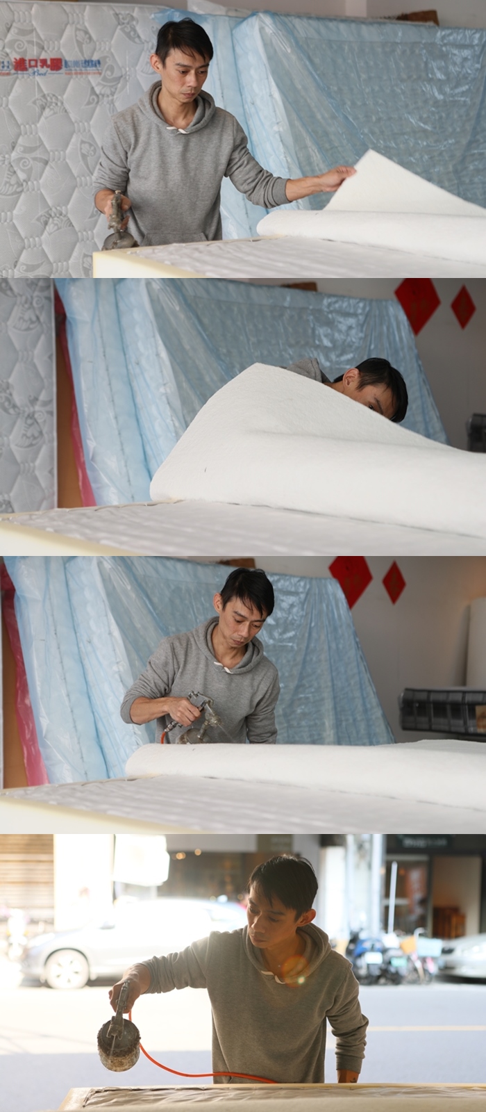 說完又繼續去揮汗製作床墊了,老客人的訂單很多,有趁著過年要換新床墊的,有嫁女兒娶媳婦的要購入新房的床墊,這些老客人的信任變成了床老闆的動力,就像很多網友問我哪種寢具比較保暖,我真心話都會說去問妳媽媽或是阿嬤,嫁女兒的時候她們買的老師傅手打棉被最溫暖,雖然感覺很醜但是卻是非常溫暖。 |