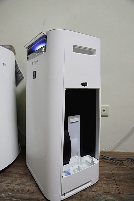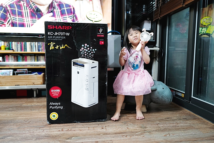 | 非常有質感的夏普水活力自動除菌離子空氣清淨機SHARP KC-JH70T-W,全白的機身一整個受到太妃的喜愛,且機器下方有滾輪,移動非常方便。 |