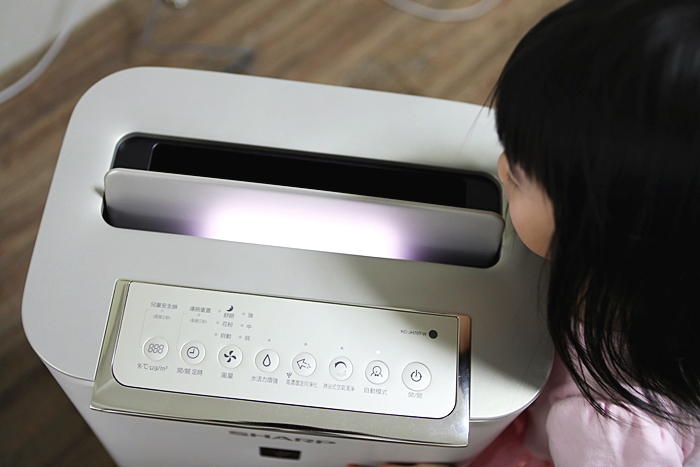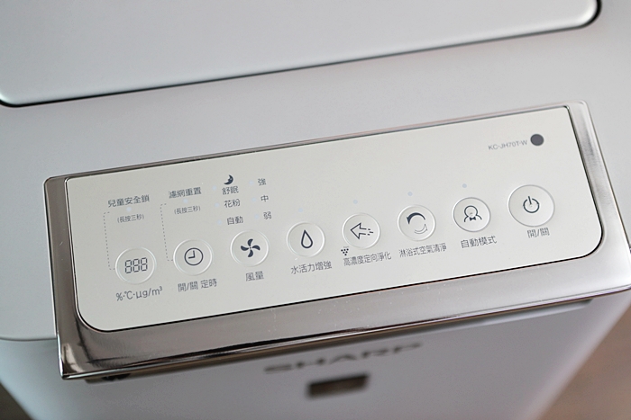 夏普水活力自動除菌離子空氣清淨機SHARP KC-JH70T-W的按鍵控制鈕都在上方,這一台之所以強大的地方在於他除了是一台空氣清淨機以外,還有高濃度的定向淨化。
