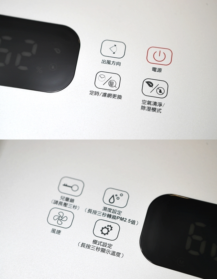| 因為有按鍵鎖,所以不用擔心小朋友因為好奇心噴發而亂搞除濕機XDD |