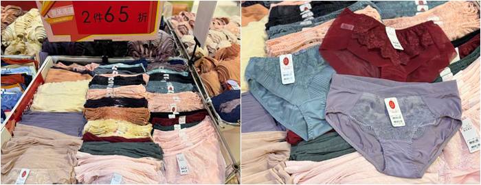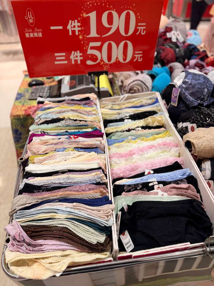 如果你想要入手這一區的單件小褲,那單件的單價較,兩件65折超划算,新款式非常多,現場備貨齊全,不管你是要平口還是低腰的小褲通通都有,顏色選擇性也非常多以外,曼黛瑪璉的小褲穿起來非常舒服,不會有勒感,蕾絲也很漂亮。