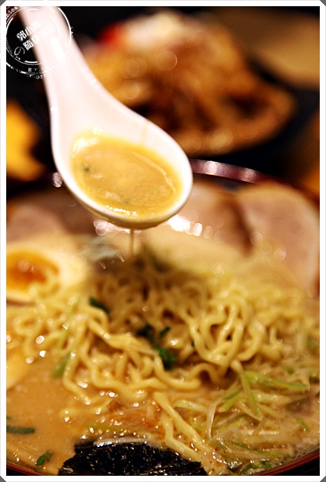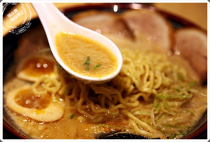 | 湯頭是以豚骨為主,帶點黑色是醬油的關係,喝了一口湯頭確實有屯京的個人魅力之處,雙湯頭喝了好幾家了,老實說屯京拉麵讓我最驚訝,第一口喝進嘴裡的時候首先出來的豚骨濃郁的味道,過了一下還是醬油的香氣帶點苦味跟了上來,兩種味道層次分的很明顯,一前一後的慢慢帶了上來,可以明顯的感受到兩個完全獨立又緊緊的結合再一起的雙湯頭滋味。 |