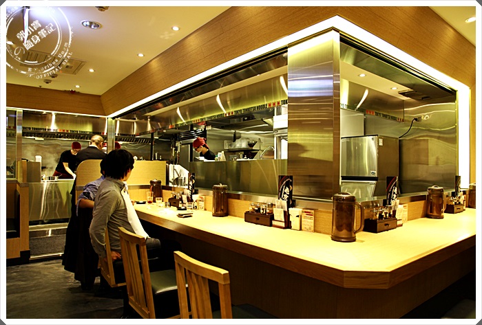 | 在台灣吃過很多家日系品牌的拉麵店,可以最完整的看到廚房的就是這一間屯京拉麵了,整理的相當的乾淨,可能也是剛營業的關係吧,但是可以看到明亮的廚房真得很有日本味道,廚師背後的幾個大鍋子熬煮湯頭燉的吱吱作響,我個人是比較喜歡坐在這樣的巴台前面用餐。 |