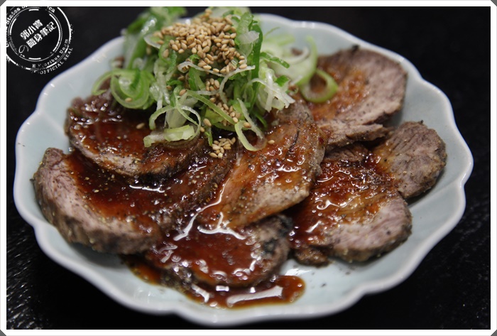 | 淋上特製醬汁的牛肉盤,老實說我不是很喜歡他的醬汁,把牛肉的味道搶得有點兇,牛肉吃起來頗耐嚼,不過我後來把肉用湯涮過洗掉醬汁還滿好吃的,醬汁偏點酸,不過500日幣有那麼多牛肉還滿划算的,且拉麵內用的牛肉都是碎肉,想大口吃肉只有點這一盤了XD |