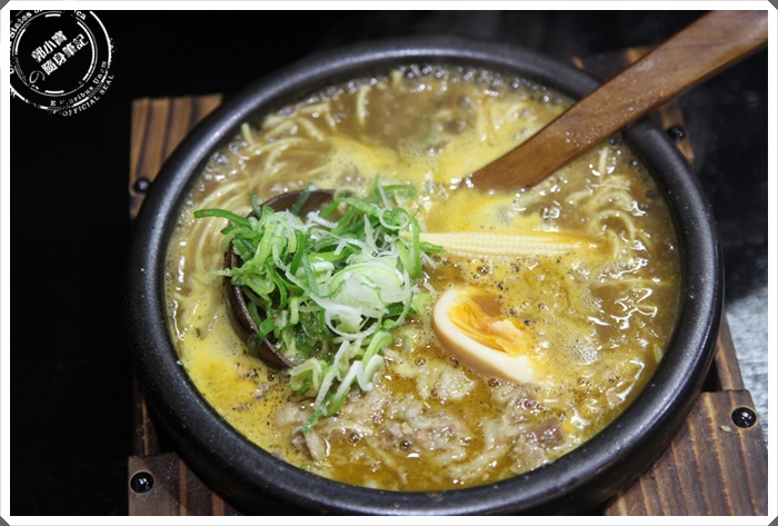 | 最受歡迎的白丸牛骨拉麵,因為使用石鍋的關係,所以上桌的時候湯頭還是滾燙的,香氣撲鼻,看起來就讓人食指大動,不過一開始真的相當的燙口,食用建議慢慢來小心一點。 |