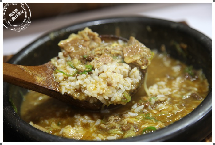 | 除了使用牛骨去熬煮出來的牛骨湯頭就很吸引人以外,這間店使用的還是石鍋,一個人就是使用一個石鍋,所以上來的時候相當的滾燙,石鍋下還要放在木板置架。 |