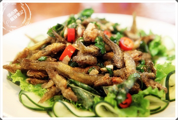 也是白板上跟菜單上沒有的菜色,因為老闆說她有特別去溪流捕抓一些食用的小魚,吃起來頗為下飯。 |