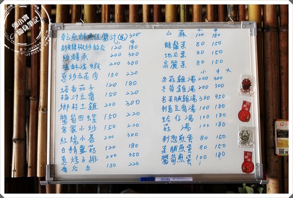 | 菜單是每一餐老闆才寫上去的,因為老闆每一餐抓到的都不一樣,有什麼吃什麼是這家店的特色,看了一下白板上面的價錢似乎都還滿平價的。 |