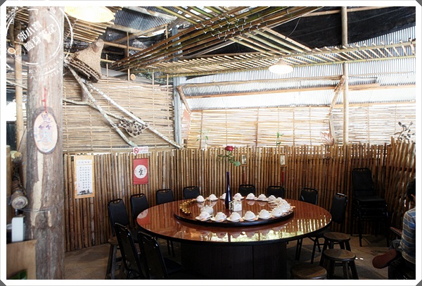 | 整家店看起來影些簡陋,但聽聞主人以前是個很厲害的大廚,後來想退癮山林每天上山跟下溪流弄些不一樣的山產,來做自己想做的事,鐵皮屋搭建起來裡面用竹子格出一間一間的包箱。 |