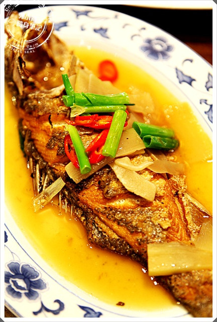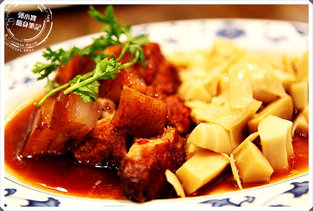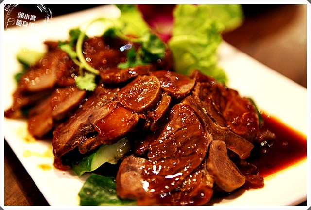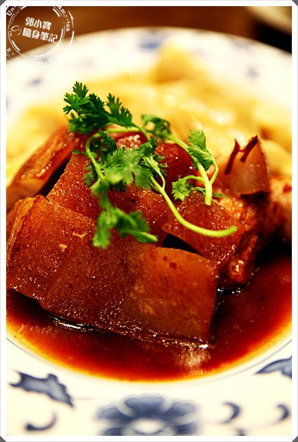 先滷後炸,外皮酥脆,有點像德國豬腳的做法再以封肉方式出菜,瘦肉也不會很乾柴, 先吃酥皮在品瘦肉,還滿不賴的。