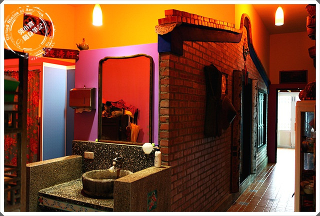 理面的裝潢也滿復古的,牆面上大量的名片跟照片顯示有許多人曾經造訪過, 當天到了用餐時間以後,幾乎座無虛席,簡直是一整個大爆滿,餐廳後面還有涼亭式的飯桌,