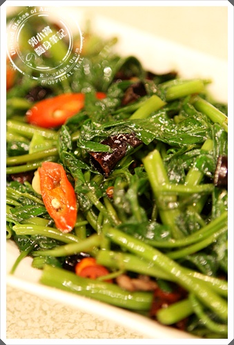 這道菜大概是夢夢看我們吃的都快高血壓了, 便提議在點個蔬菜,但是我們又是重口味的!! 所以就選擇了小招牌宮保空心菜, 大概也是算渝湘園的獨門菜色,吃起來香辣有勁, 辣度可以跟店家反應調整或事先先要求一下, 但整體真的有向宮保雞丁的風味,空心菜吃起來香氣十足。
