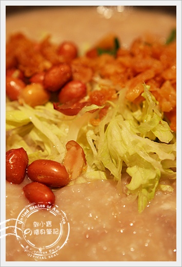 看起來就非常的可口, 加上花生、配料下去扮調後,即可食用, 粥一靠近我就聞到很香的味道了,