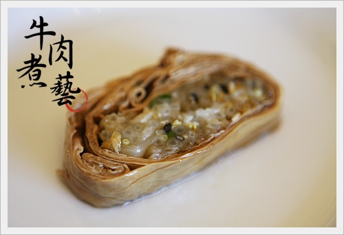 這道料理我是最後才吃到, 一直聽著老王根文萍還有摸摸大喊著好好吃ㄛ, 於是我就吃了一塊, 剛咬下的第一口, 我就罵髒話了!! 裡面包豆芽菜!! 隨便包啥都好啊~ 包啥豆芽阿>"<
