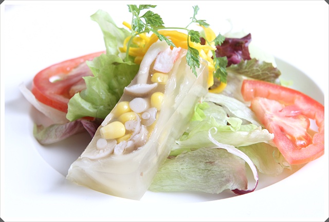 680的前菜,我門都交換著吃,但是蔬菜凍卻被摸摸吃完了,因為他說很好吃不小心吃完了。