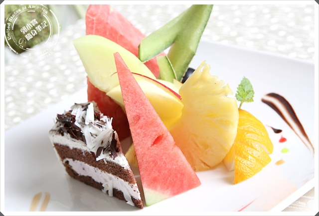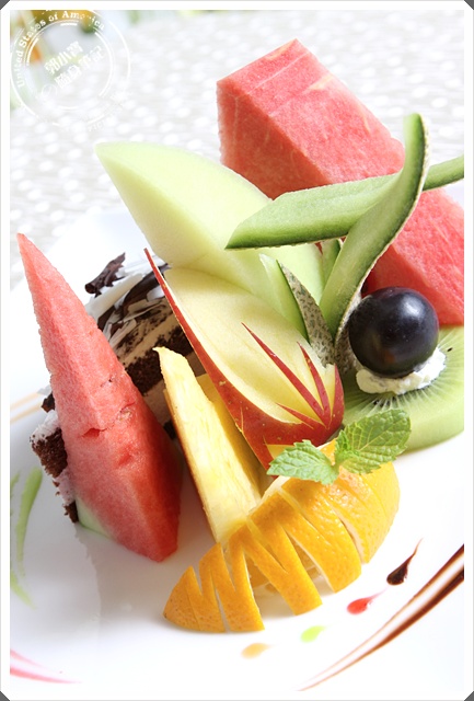 水果擺盤也都頗精緻的,但是把蛋糕跟水果放在一起似乎奇怪了點。